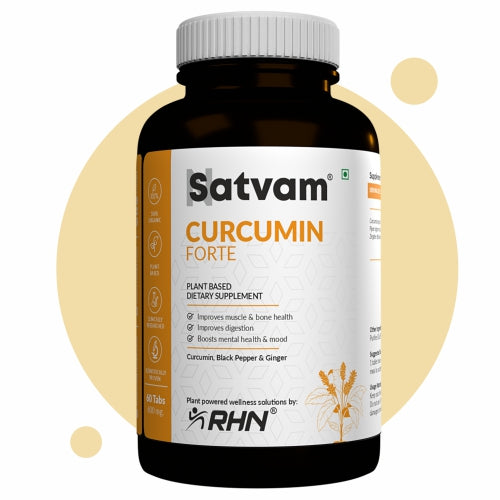 Satvam’s Curcumin Forte offers a plant-based formulation containing key ingredients like Curcumin, Black pepper, and Ginger. Black pepper helps to increase curcumin absorption in the body and an increased level of curcumin boosts mental health and mood by improving digestion and overall wellness. Additionally, strengthen the muscles and joints.