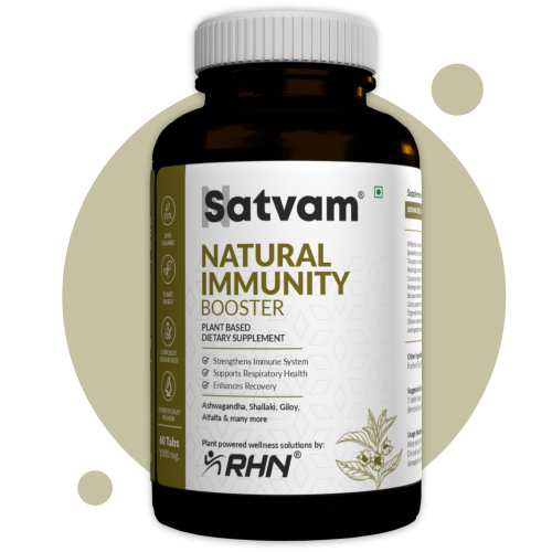 Satvam’s Natural Immunity Booster product is a plant-based formulation that contains key ingredients like Ashwagandha, Curcumin, Giloy, and Kalmegh. These ingredients aid in boosting immunity by rejuvenating the body and providing antioxidant support. Reduces anxiety and stress as well.