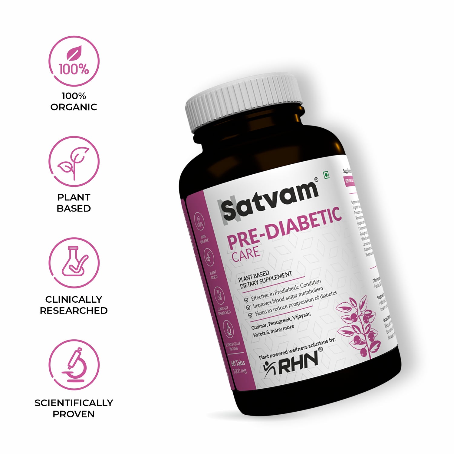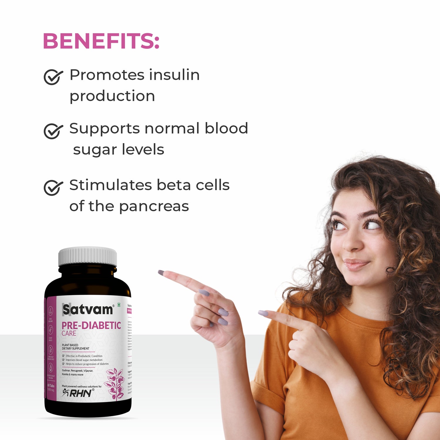 SATVAM PRE-DIABETIC CARE offers a plant-based formulation that contains plant-based key ingredients like Jamun beej, gudmar, fenugreek, and vijaysar. These ingredients aid in maintaining blood sugar levels by stimulating B cells of the pancreas and promoting insulin production in our body to control Sugar levels. It also helps to reduce the symptoms like body fatigue, dryness of mouth, weakness and frequent urination, etc.
