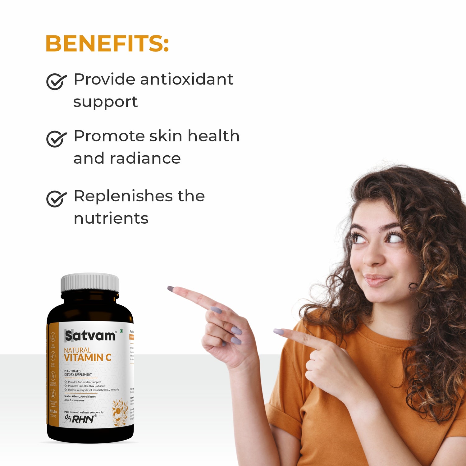 Satvam’s Natural Vitamin C offers a plant-based formulation that contains key ingredients like Acerola berry, Amla and Grape seed. This ingredient helps in rich source of vitamin C source of nutrients and reduce the appearance of wrinkles, brightens the skin and boosts hydration.
